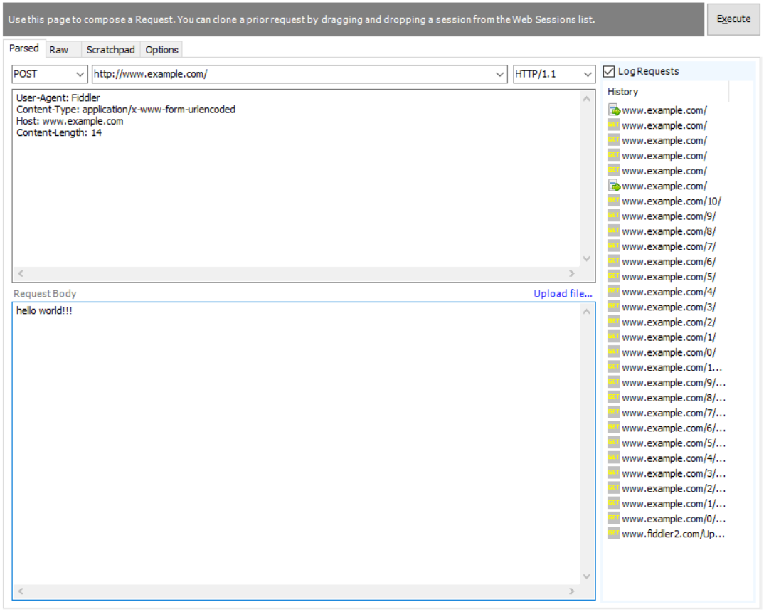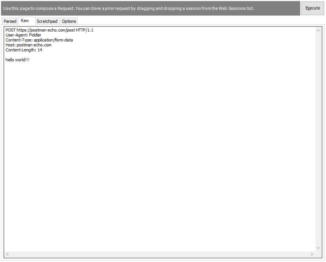 Composer中的第2个tab是Raw。我们可以在Raw中编写原始的http请求协议,然后点击execute发送请求。一般我们都不会这么编写吧…